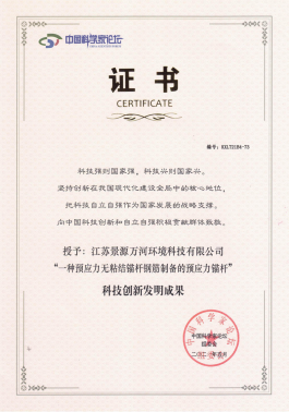 江苏景源万河环境科技有限公司作为行业创新的参与者,受邀参加了此次论坛并获得了“高质量发展科技创新示范单位”、“《一种全装配承压型变直径钢筋笼扩大头锚杆桩系统》科技创新发明成果”和“《一种预应力无粘结锚杆钢筋制备的预应力锚杆》科技创新发明成果”三项荣誉证书。