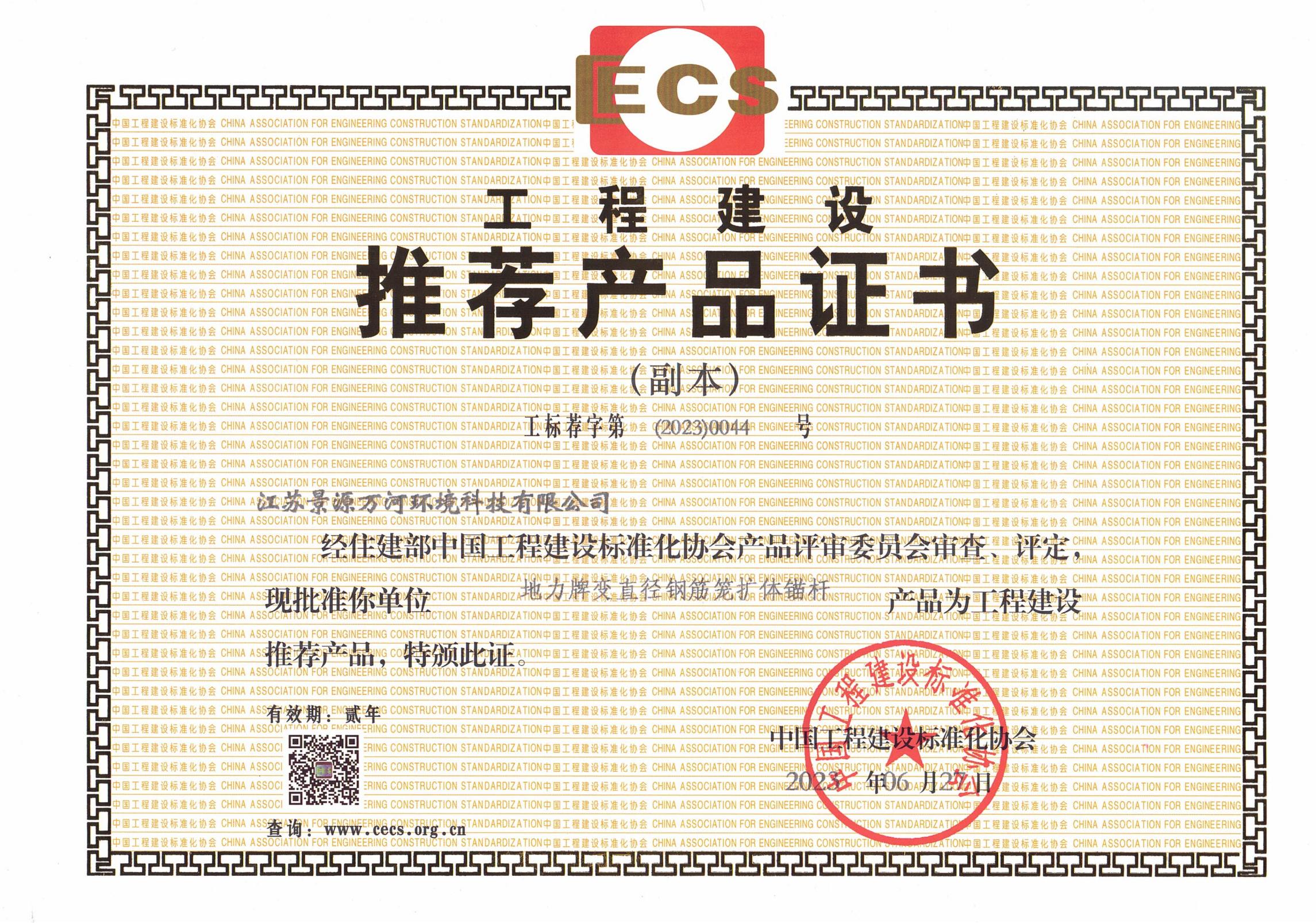 工程建设推荐产品证书